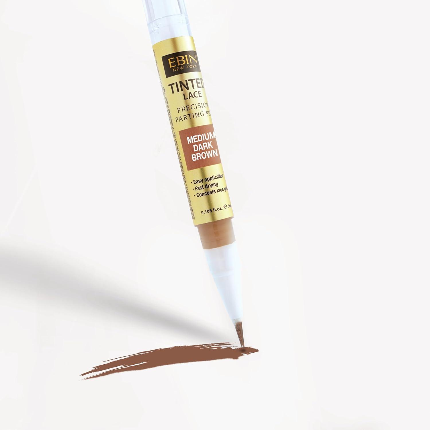 Tinted Lace Precison Parting Pen Light Warm Brown 0.105oz -Wig Lace Tint with Brush Applicatior, Easy to use, Long Lasting Formula, Blends Natural, Seamless Finish(Medium Dark Brown)